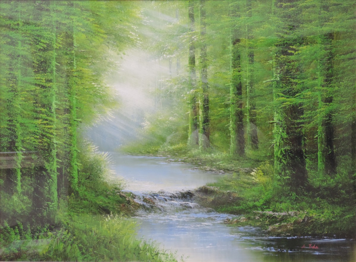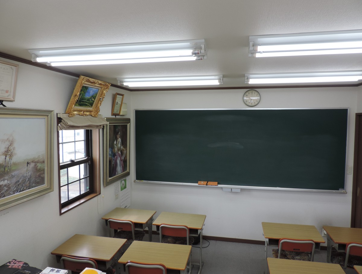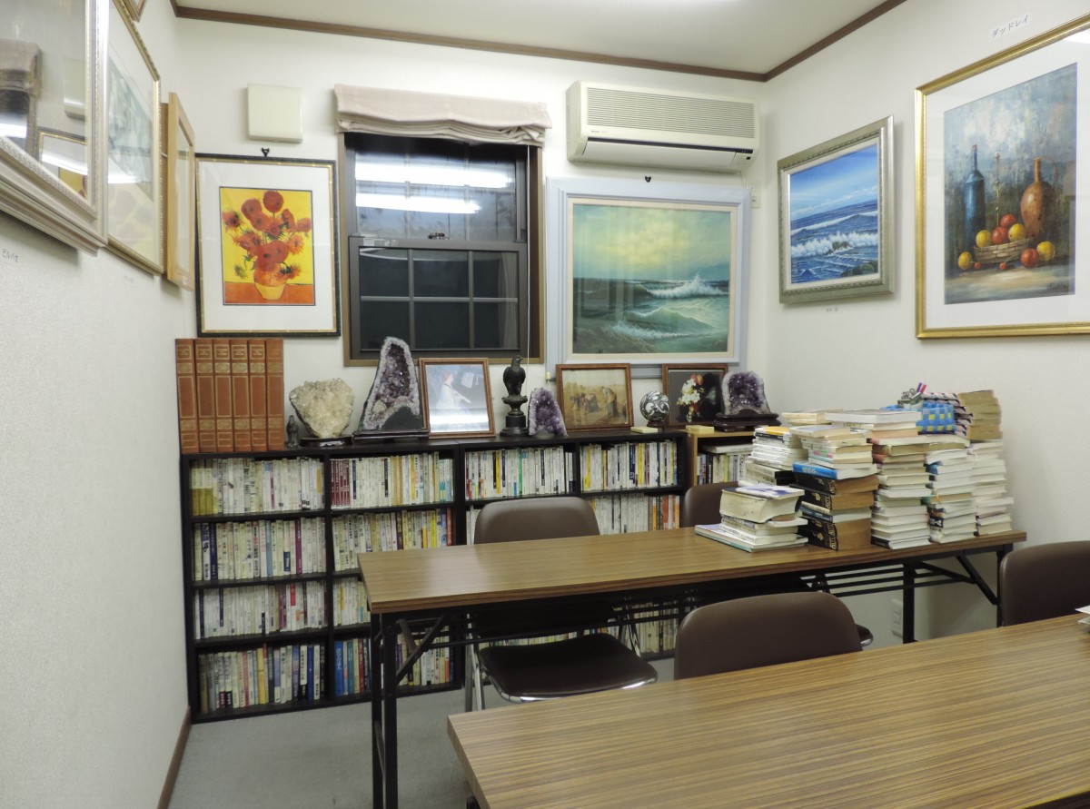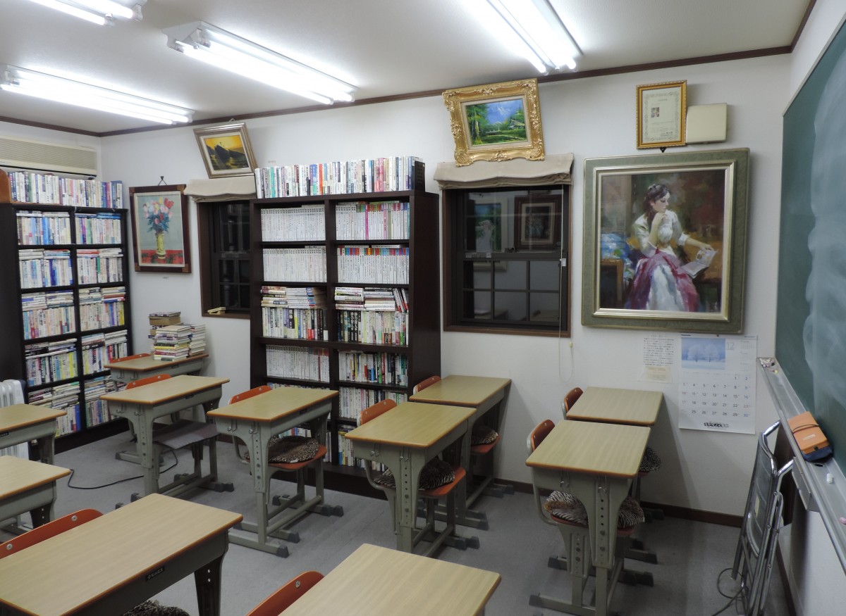 当塾内には、事務所と塾長室(ログハウス風)と三つの教室とホールに100点以上の絵画と大理石・ブロンズ彫像が展示されています。芸術作品を鑑賞することによる効能として、副交感神経を高め、リラックスさせる働きがあると医学的に実証されています。学習中には交感神経が優勢になり、緊張状態に置かれますが、休憩時間に四方に飾られてある絵画に触れることで副交感神経が刺激されて弛緩状態に戻されます。この緊張と弛緩のバランスが学習に非常に良いと言われています。左脳と右脳の絶妙なコラボレーションが作用している訳です。私たちの身近な医療機関や福祉施設にも多数の絵画や彫像が展示されていることからも説明がつくと思います。当塾にも希少価値のある19世紀の油彩画(証明書付き)が3点展示されています。