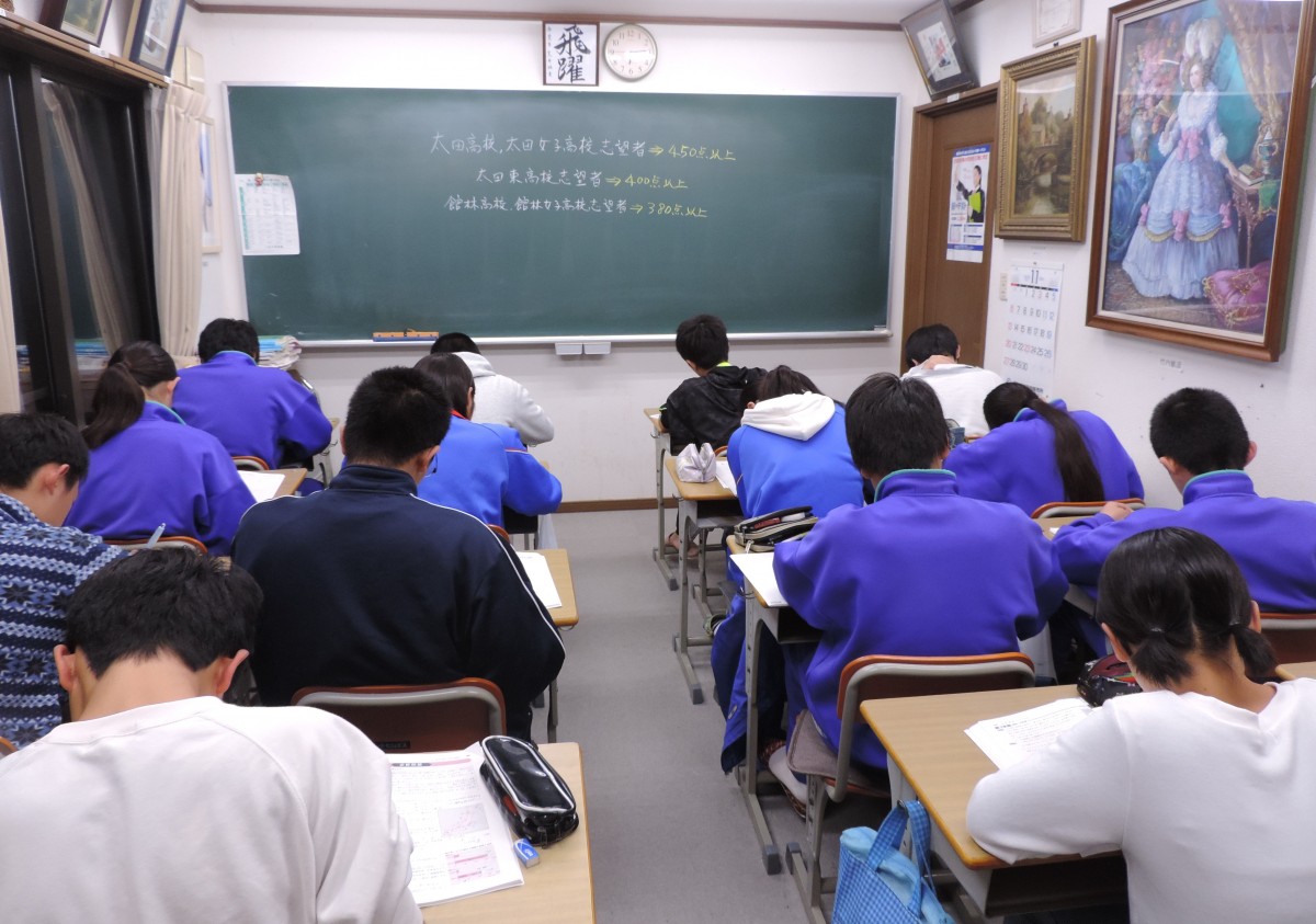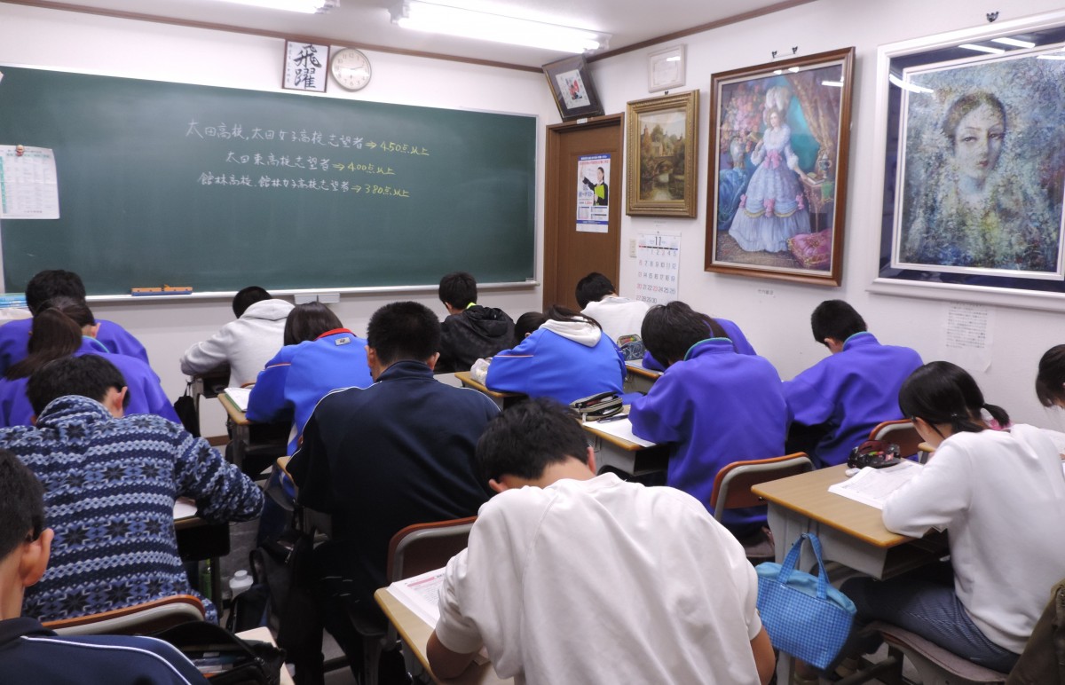 前橋高校、前橋女子高校、太田高校、太田女子高校、不動岡高校志望の塾生です。授業態度は真面目で、私語をする人はいません。入塾当初は、普通の学力の塾生も、指示通りの学習をして上記の高校に合格した事例も多々あります。